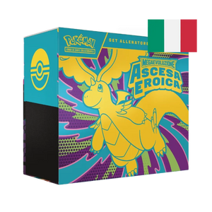 Bundle dell'espansione Ascesa Eroica con illustrazione di Mega Dragonite-ex e Mega Lucario-ex. Bustina dell'espansione Ascesa Eroica con illustrazione di Mega Dragonite-ex e Mega Lucario-ex.