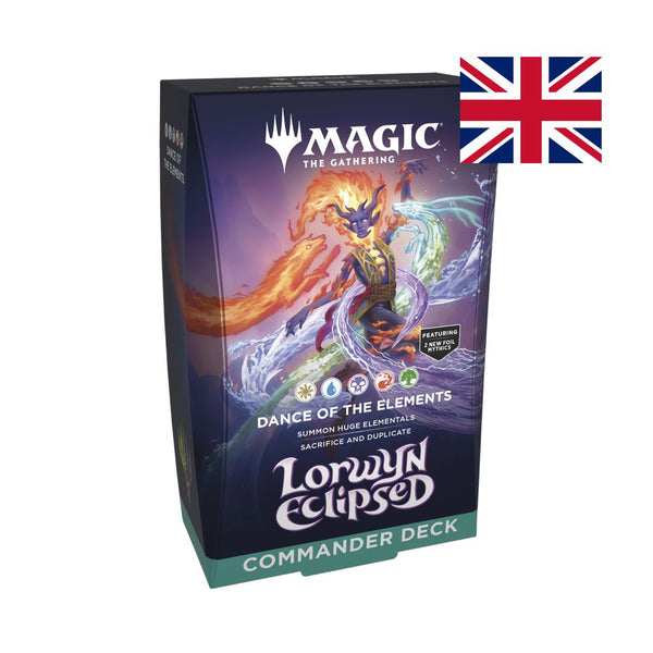Dance of the Elements celebrates the Elemental life cycle through an innovative strategy revolutionizing how to play big creatures in Commander. Commander Ashling (Lorwyn's bright version) enables casting Elementals with Evoke at reduced costs, generating devastating Enter-the-Battlefield effects like destroying permanents, drawing cards, or creating tokens. When these giants are sacrificed (as Evoke requires), Ashling can copy them, doubling effects and creating persistent threats. The deck includes synergies with classic Elementals like Horde of Notions (already present in original Lorwyn), cards benefiting from sacrifices like Doubling Season, and new creatures exploring the sacrifice-copy theme. With 2 borderless foil commanders (likely Ashling in two versions), 10 double-faced tokens to track copies and generated creatures, and a strategy scaling perfectly in multiplayer games, Dance of the Elements offers a unique Commander experience capturing Lorwyn's primordial power.
