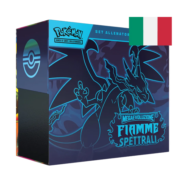 The Fiamme Spettrali Elite Trainer Box (Set Allenatore Fuoriclasse) represents the beating heart of the Italian Mega Evolution experience, combining premium pack opening with fully localized professional accessories. This magnificent collectible box features the iconic Mega Charizard X-ex surrounded by phantasmal blue flames, offering 9 Italian packs, an exclusive Italian full-art Charcadet promo card, and all tools necessary to dominate national tournaments and leagues. Ideal for serious Italian players wanting to enter the expansion with completely translated material and collectors seeking the most prestigious packaging of the Italian series.