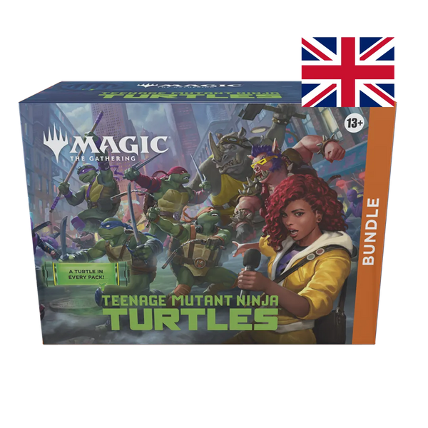 Your friendly neighborhood quartet of ninja turtles makes an explosive jump into Magic: The Gathering with perfect timing! Gather Leonardo, Raphael, Donatello, and Michelangelo together with their allies from across the TMNT universe and join forces to defeat the sinister enemies threatening the city. The Bundle is a perfect gift for Ninja Turtles superfans and newcomers visiting your store, containing a bit of everything to launch a player's collection, plus an oversized set-themed Spindown life counter and an exclusive deck box to safely store cards.