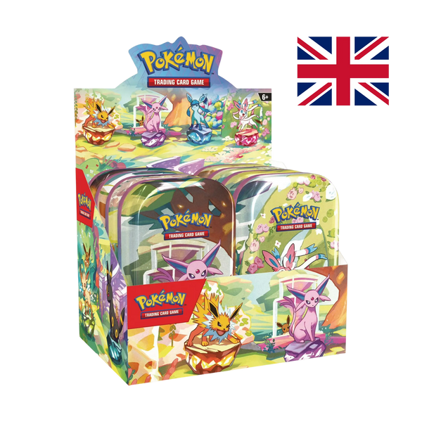 Ottieni 8 Mini Tin dell'espansione Scarlatto e Violetto – Evoluzioni Prismatiche in lingua inglese con questo display completo! Ogni Mini Tin presenta un artwork esclusivo di un Pokémon Eeveelution e contiene 2 buste dell'espansione più ricercata degli ultimi anni.